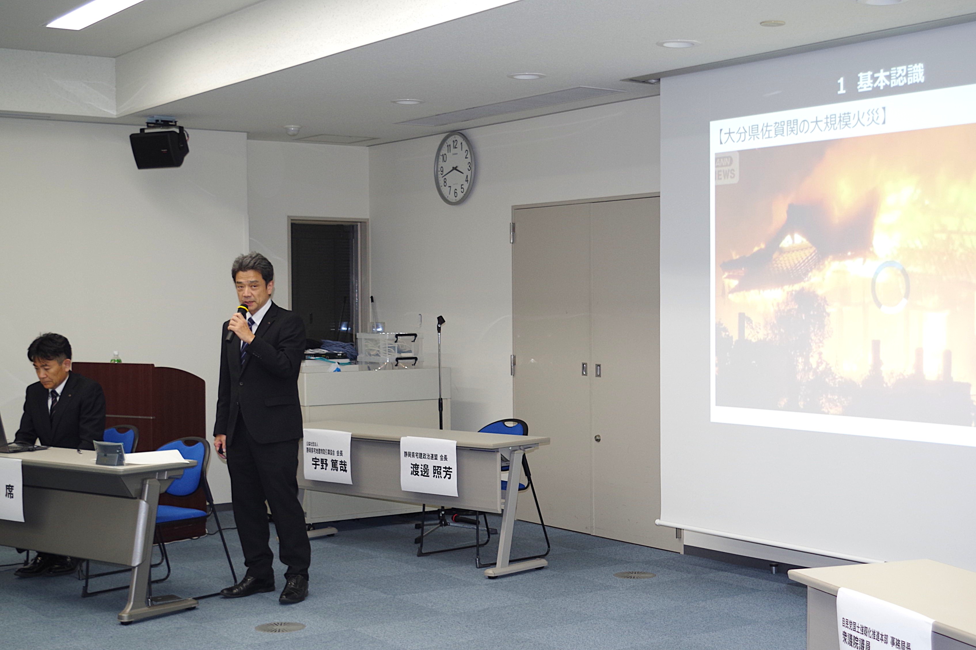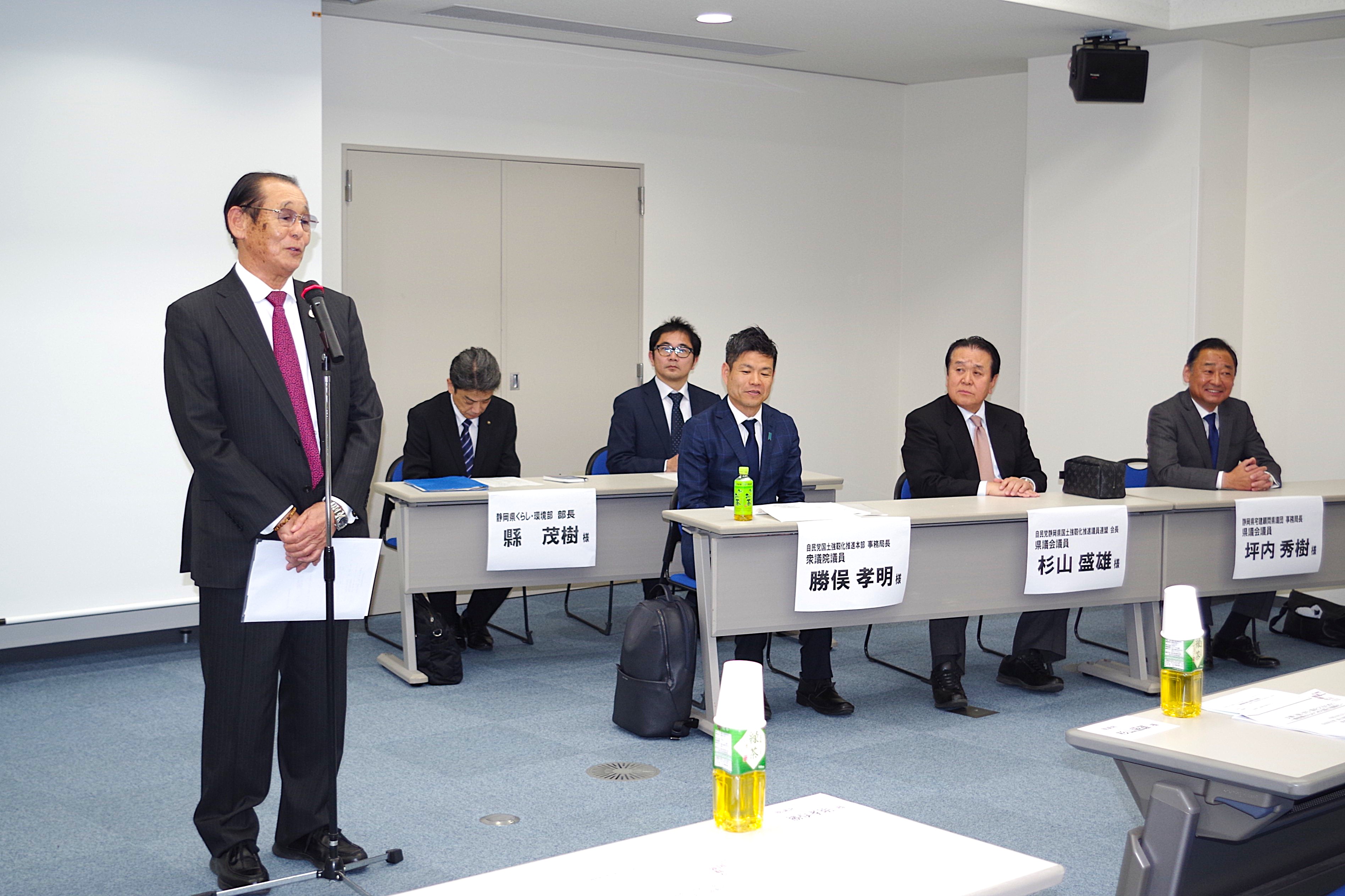 当日は、事前に提出した「静岡県盛土等規制に関する条例」への要望・意見書の内容を小林幹事長、小田副幹事長が説明、各委員 (県議:11名) からの質問に対し、渡邊会長が回答しました。