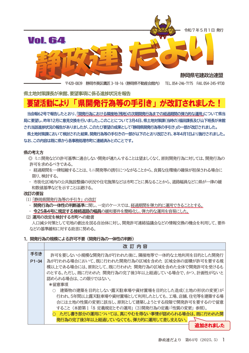 静岡県宅建政治連盟 機関紙〔静政連だより〕